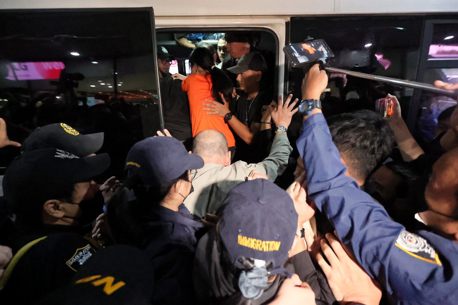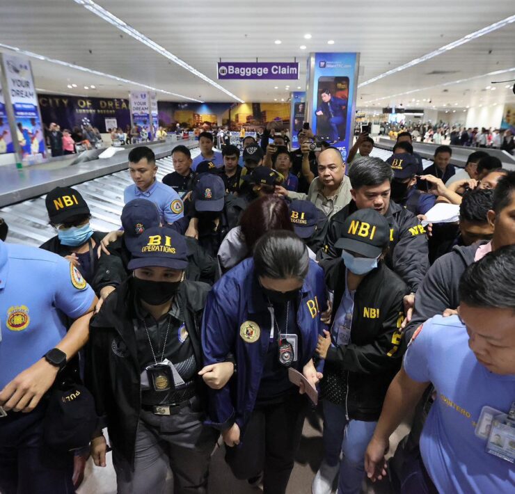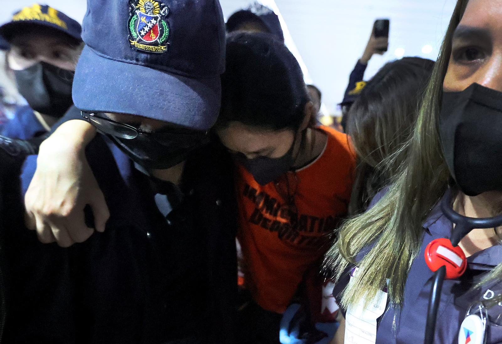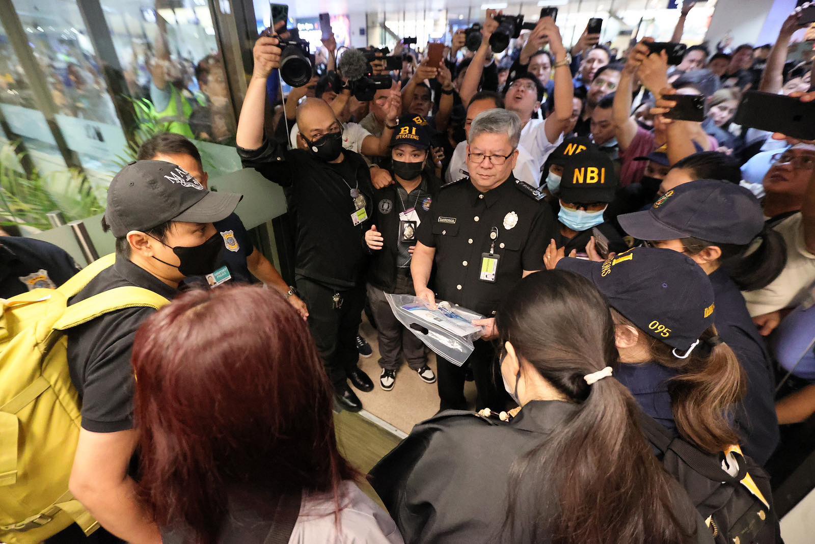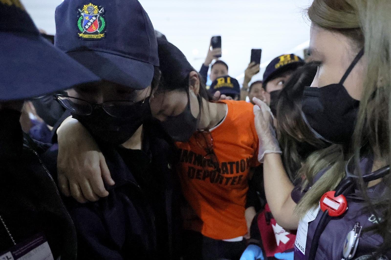 Wearing face masks and keeping their heads bowed low, they were separately escorted by aviation security officers and agents of the National Bureau of Investigation as they were whisked into a van that then brought them to the Bureau of Immigration’s (BI) central office in Manila.