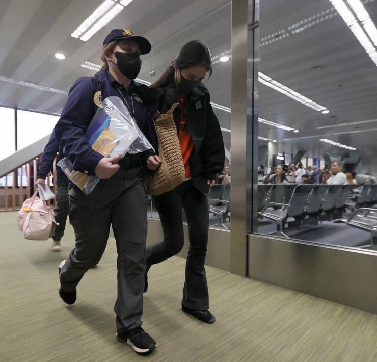Inquirer photographer Grig C. Montegrande captured the moment when Sheila Guo and Ong arrived at Ninoy Aquino International Airport (Naia) Terminal 1 around 5 p.m. via Philippine Airlines Flight PR 540 from Jakarta on Thursday, Aug. 22.