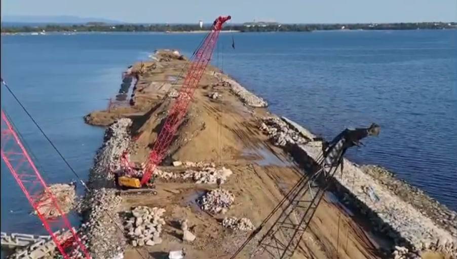 The project will feature a four-lane road embankment, a central bridge, dedicated bike lanes, sidewalks and wave deflectors for coastal protection.