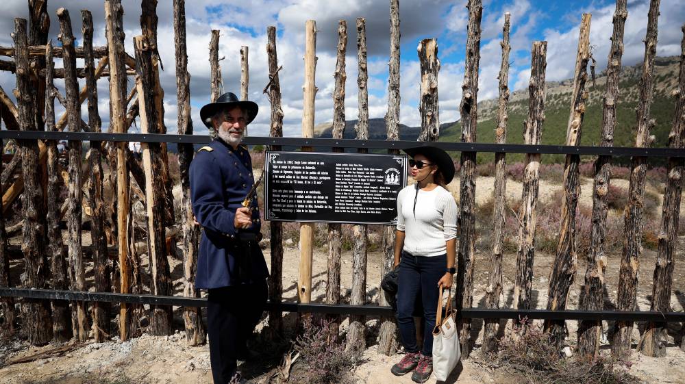 Garbed in a Union officer’s uniform, Sergio Garcia, a founding member of the Sad Hill Cultural Association, unveiled a plaque commemorating the hundreds of local extras who partook in the original production.