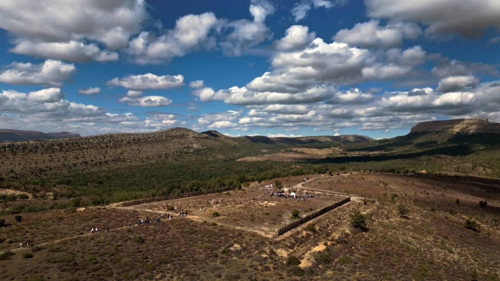 Aerial view of refurbished film set Betterville Prison in Carazo, Burgos province, Spain, September 7, 2024. The Sad Hill Association, a group of locals and film buffs, have attracted thousands of fans to the area after renovating original sets used in Italian director Sergio Leone’s The Good, The Bad and The Ugly, including Betterville Prison and Sad Hill graveyard, scene of the iconic shootout between protagonists Clint Eastwood, Lee Van Cleef and Eli Wallach. REUTERS/Vincent West