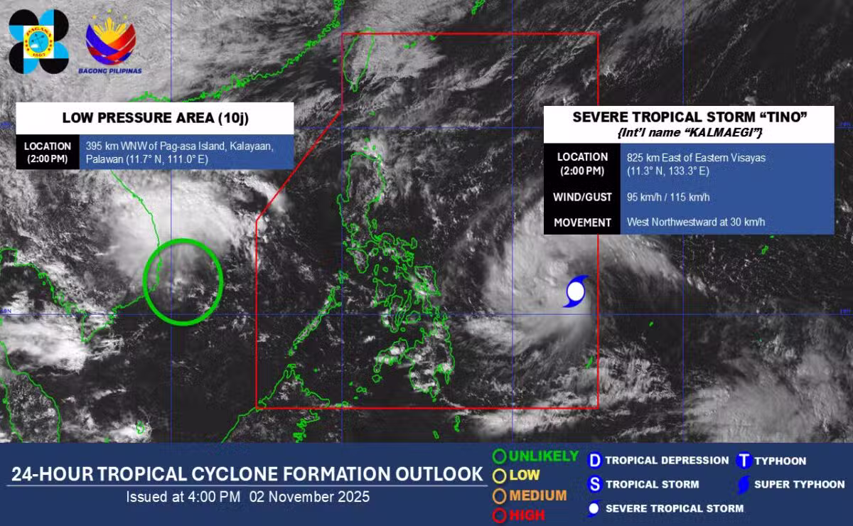 After a scorching Sunday afternoon, Tropical Cyclone “Tino” (international name: Kalmaegi) intensified into a severe tropical storm while over the Philippine Sea.