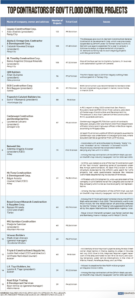 Top contractors of gov’t flood control projects by Inquirer Staff August 17, 2025 Tags flood control ph