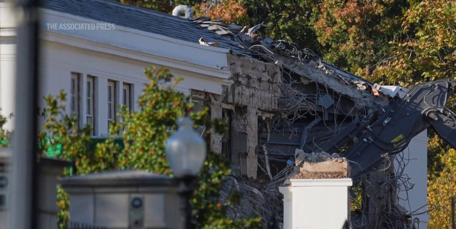 Dramatic photos of the demolition work showed construction equipment tearing into the East Wing facade and windows and other building parts in tatters on the ground. Some reporters watched from a park near the Treasury Department, which is next to the East Wing.