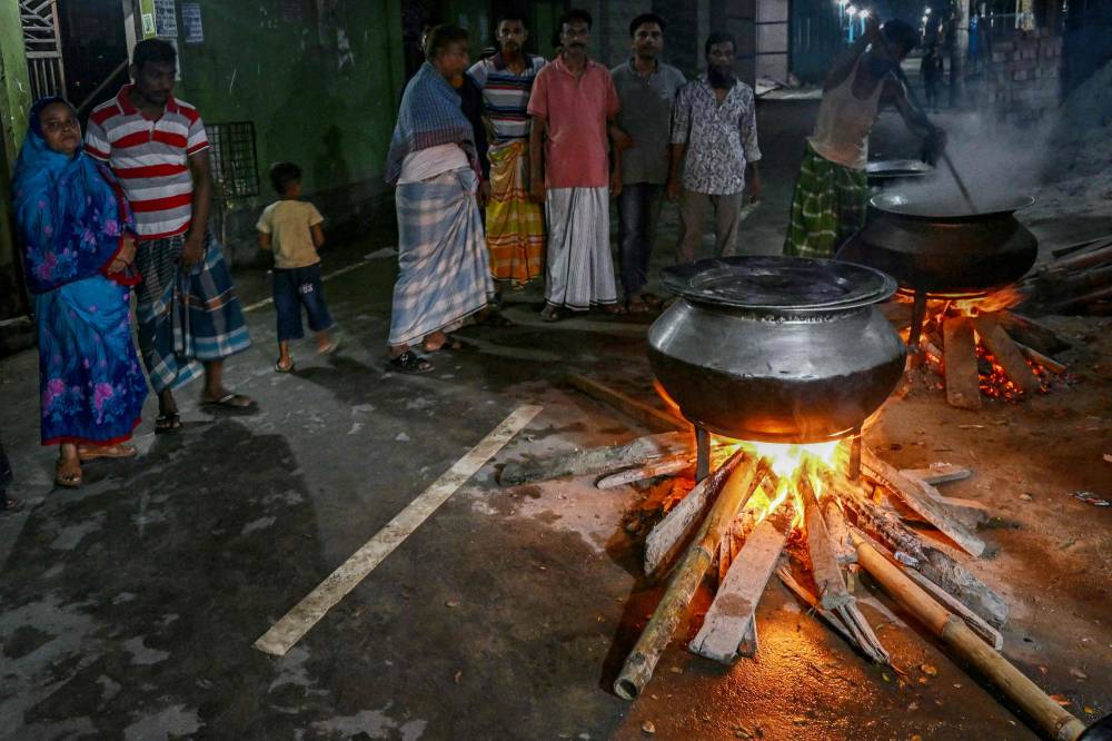 Residents prepare meal for volunteers who are patrolling around neighborhoods in the absence of Bangladeshi police force, during nighttime in Dhaka on August 11, 2024, days after a student-led uprising that ended the 15-year rule of ousted premier Sheikh Hasina. Nobel laureate Muhammad Yunus and his newly named interim government set out on August 9 to restore "law and order" after a student-led uprising and deadly mass protests forced predecessor Hasina into exile. (Photo by Indranil MUKHERJEE / AFP)