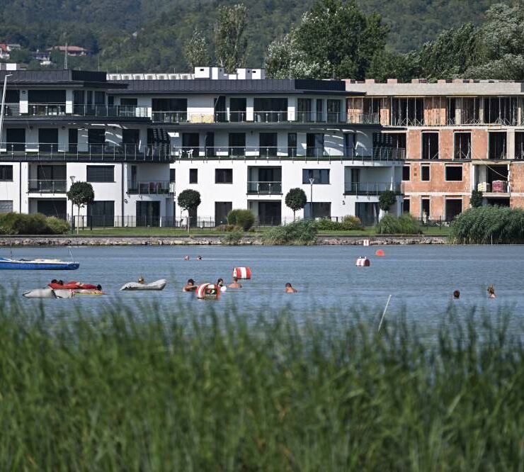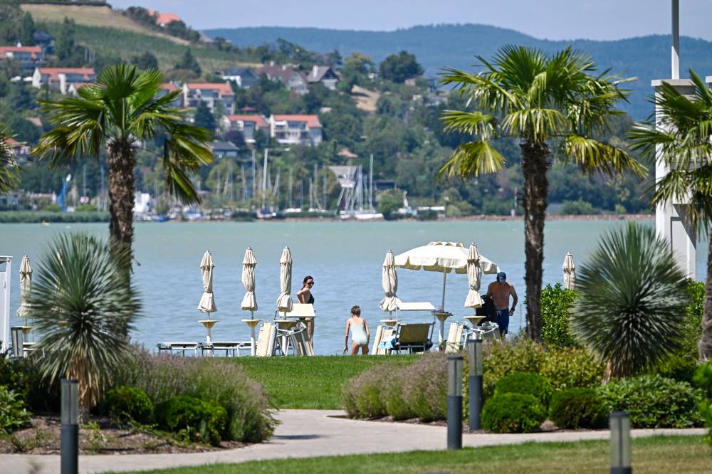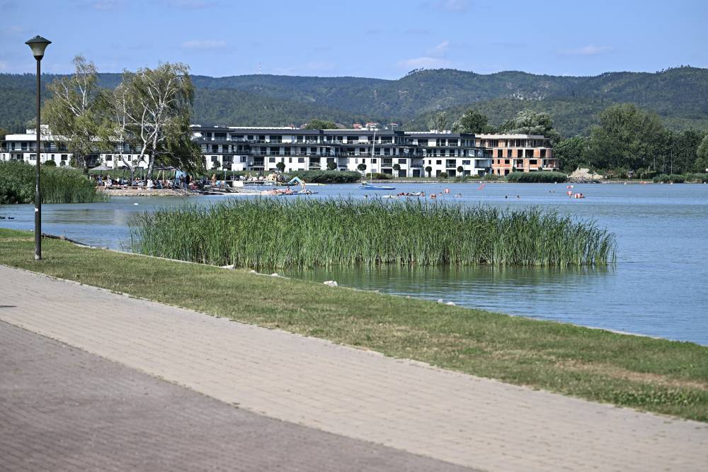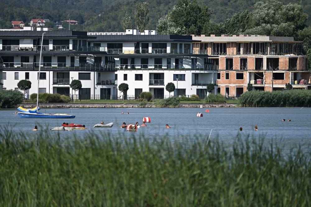 A picture taken on July 29, 2024 shows new buildings on the bank of the Balaton lake in the town of Keszthely, Hungary. It's the "Hungarian Sea": the turquoise Lake Balaton, the largest in Central Europe, attracts families every summer. But the open-air beaches and campsites are gradually being replaced by luxury hotels and private areas. (Photo by ATTILA KISBENEDEK / AFP)
