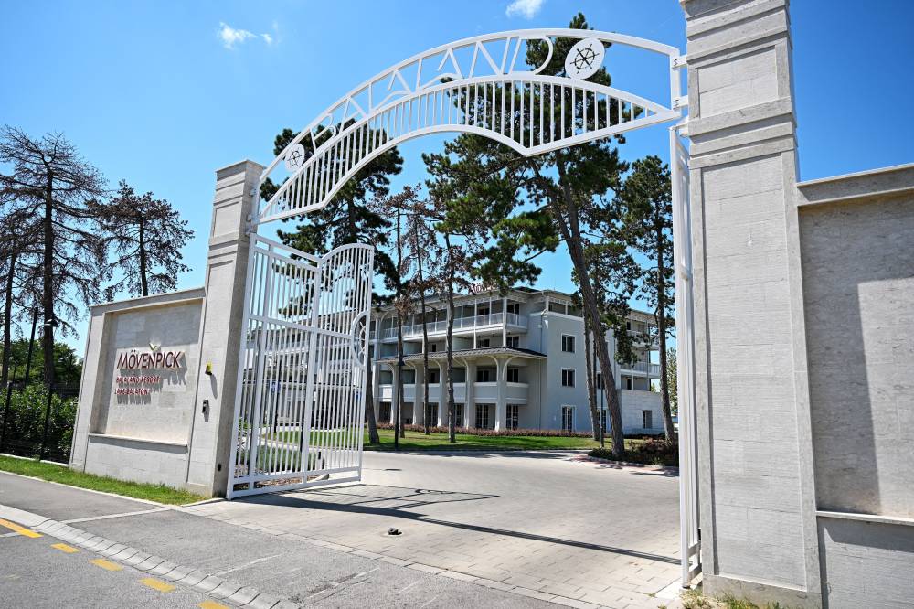 A picture taken on July 29, 2024 shows the buildings of a new construction, the 'Balaland' on the bank of the Balaton lake in the town of Szantod, Hungary. It's the "Hungarian Sea": the turquoise Lake Balaton, the largest in Central Europe, attracts families every summer. But the open-air beaches and campsites are gradually being replaced by luxury hotels and private areas. (Photo by ATTILA KISBENEDEK / AFP)