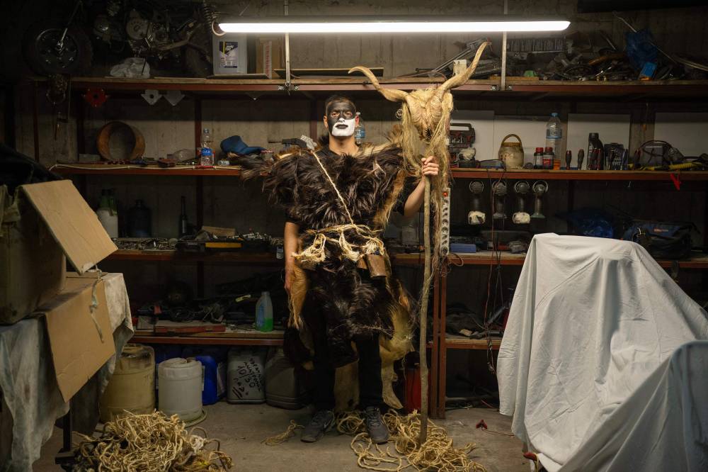 Antreas Bratsos, 18, poses for a portrait prior to the celebration of "the Night of the Ghosts" carnival in the remote mountainous town of Amfissa in central Greece, on March 16, 2024. Celebrations are in full swing on the Night of the Ghosts as townspeople, dressed as fairies, tanners and ghosts. (Photo by Angelos TZORTZINIS / AFP)