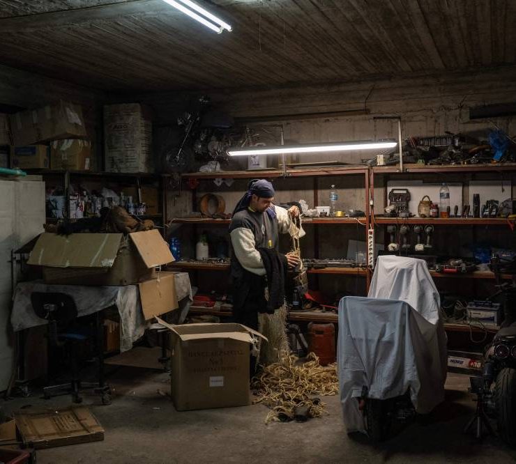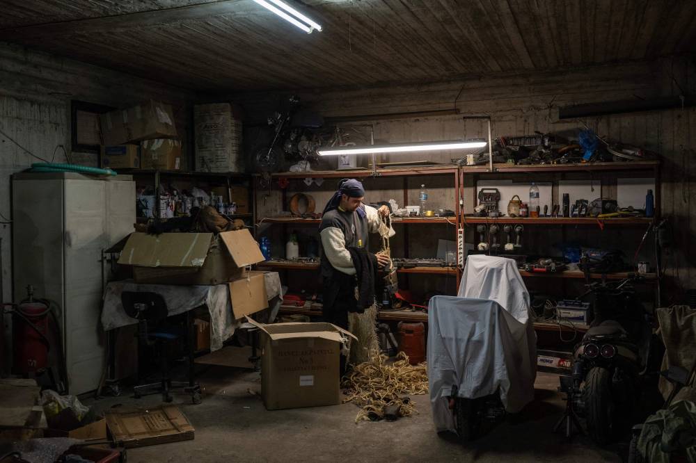 Costas Panagiotas, 42, fireman, prepares at his house prior to the celebration of "the Night of the Ghosts" carnival in the remote mountainous town of Amfissa in central Greece, on March 16, 2024. Celebrations are in full swing on the Night of the Ghosts as townspeople, dressed as fairies, tanners and ghosts. (Photo by Angelos TZORTZINIS / AFP)