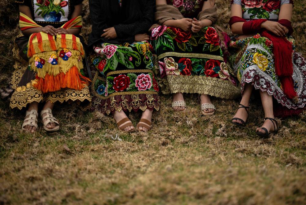 Purepecha痴 Indigenous women walk during a 3-day ceremonial procession from Cocucho to Ocumicho indigenous villages in Michoacan State, Mexico, on January 31, 2024. Every year, Purepecha痴 Indigenous people from different regions of Michoacan State celebrate the Fuego Nuevo Purepecha (Purepecha痴 New Fire), a fire lighting ceremony to mark the start of the new year. (Photo by CARL DE SOUZA / AFP)