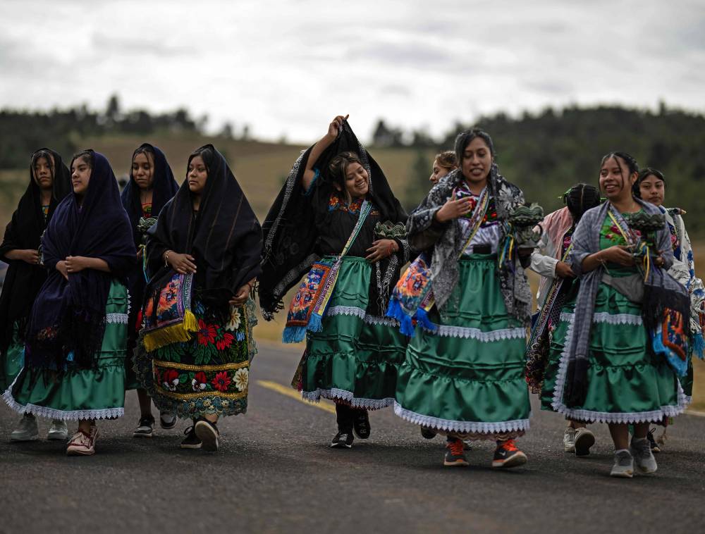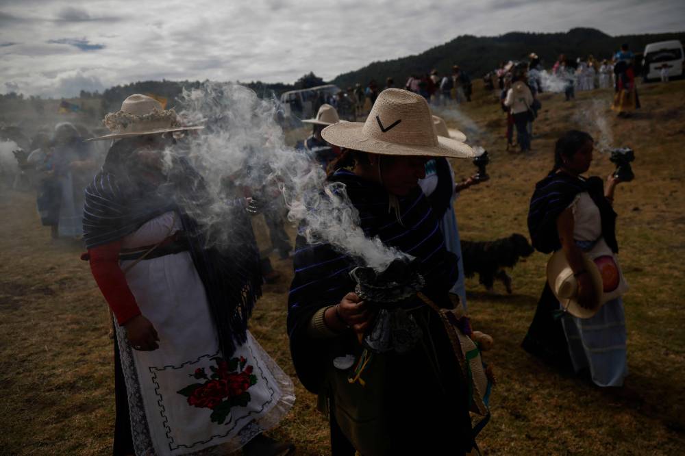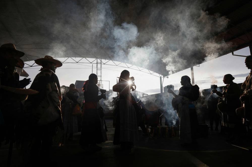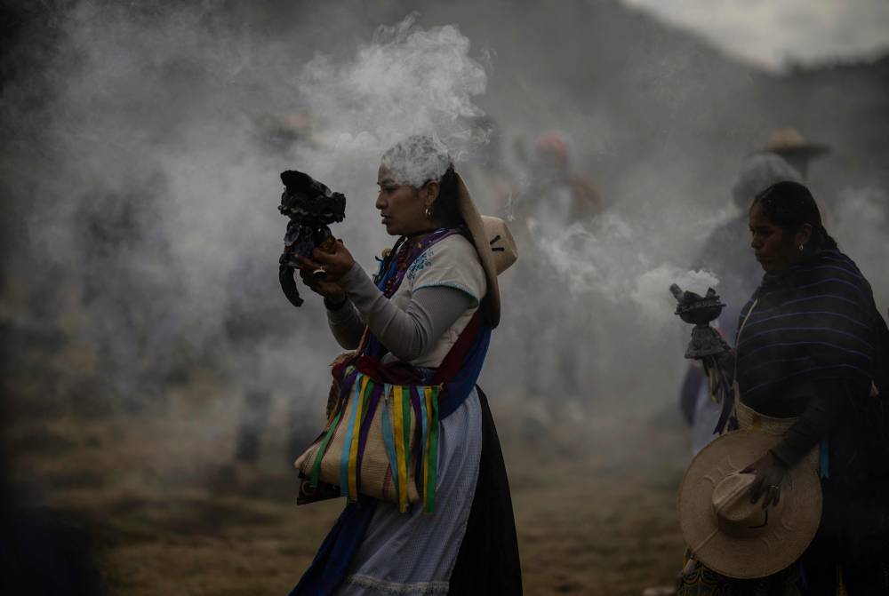 TOPSHOT – Purepecha痴 Indigenous women hold incense during a 3-day ceremonial procession from Cocucho to Ocumicho indigenous villages in Michoacan State, Mexico, on January 31, 2024. Every year, Purepecha痴 Indigenous people from different regions of Michoacan State celebrate the Fuego Nuevo Purepecha (Purepecha痴 New Fire), a fire lighting ceremony to mark the start of the new year. (Photo by RODRIGO OROPEZA / AFP)