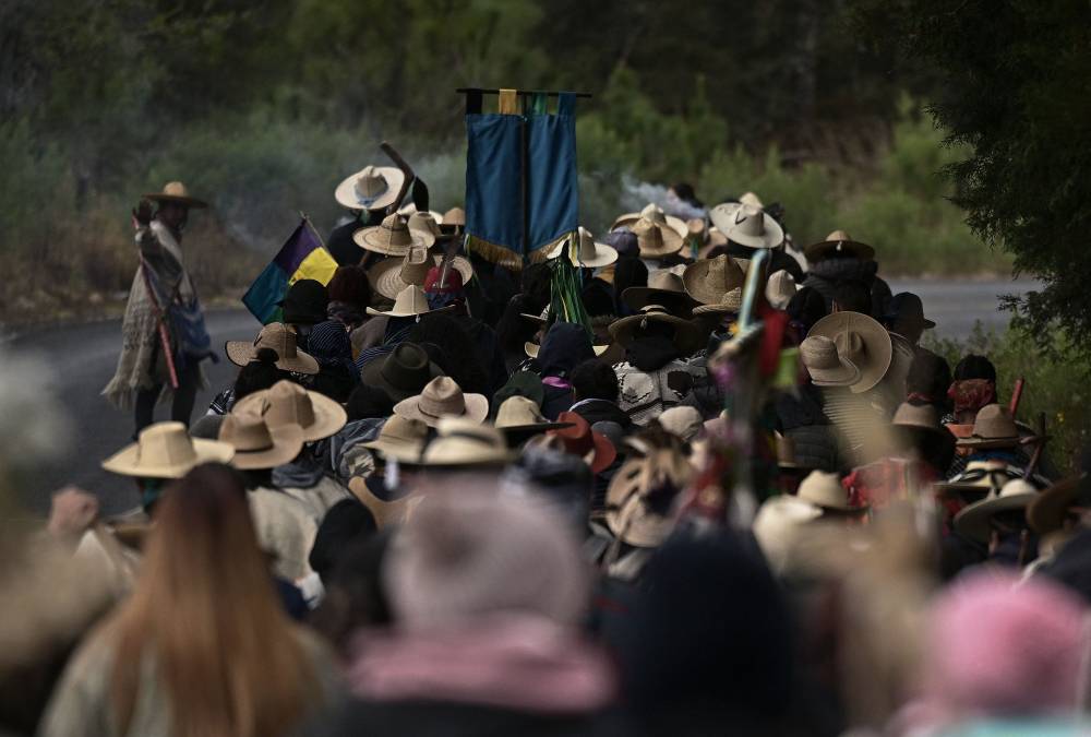 TOPSHOT – Purepecha痴 Indigenous people carry incense as they walk during a 3-day ceremonial procession from Cocucho to Ocumicho indigenous villages in Michoacan State, Mexico, on January 31, 2024. Every year, Purepecha痴 Indigenous people from different regions of Michoacan State celebrate the Fuego Nuevo Purepecha (Purepecha痴 New Fire), a fire lighting ceremony to mark the start of the new year. (Photo by CARL DE SOUZA / AFP)