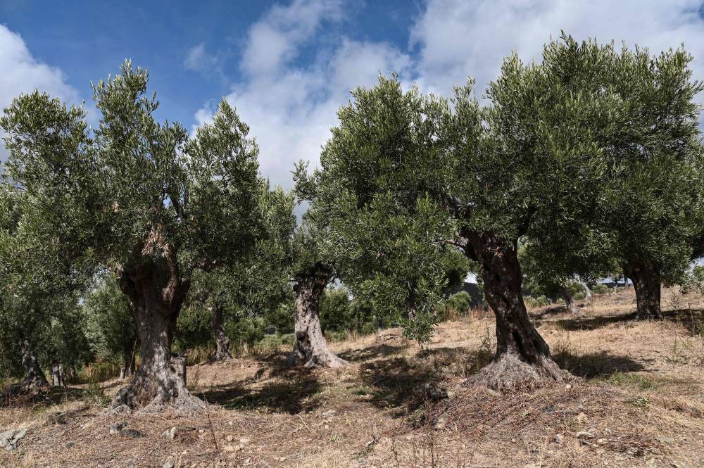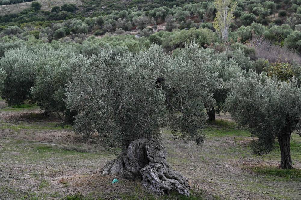 This photograph taken on November 14, 2023, shows a field with aged olive trees, near the city of Polygyros in the Halkidiki region. In mid-November, the temperature in the Halkidiki region of Polygyros, northern Greece was still over 15 degrees Celsius (59 degrees Fahrenheit). The warm weather has affected some six million trees in the region, according to producers and experts. (Photo by Sakis MITROLIDIS / AFP)