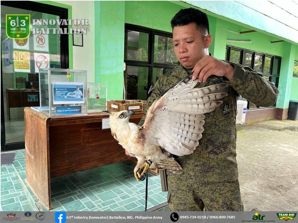 TACLOBAN CITY—Soldiers of the 63rd Infantry Battalion (IB) of the Philippine Army turned over a wounded Philippine hawk-eagle to environment officials on Thursday, after it was found in the upland village of Benowangan, Borongan City in Eastern Samar.