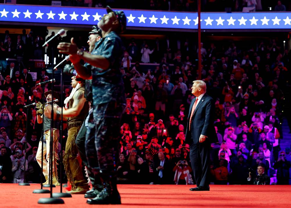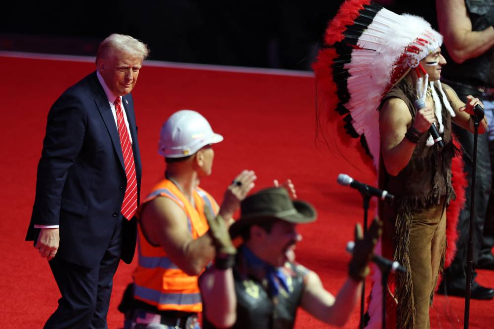 Sunday night’s preinauguration event saw them don their high-camp construction worker, police officer, native American, GI, and biker outfits to perform at the Capital One Arena in Washington alongside the president-elect.