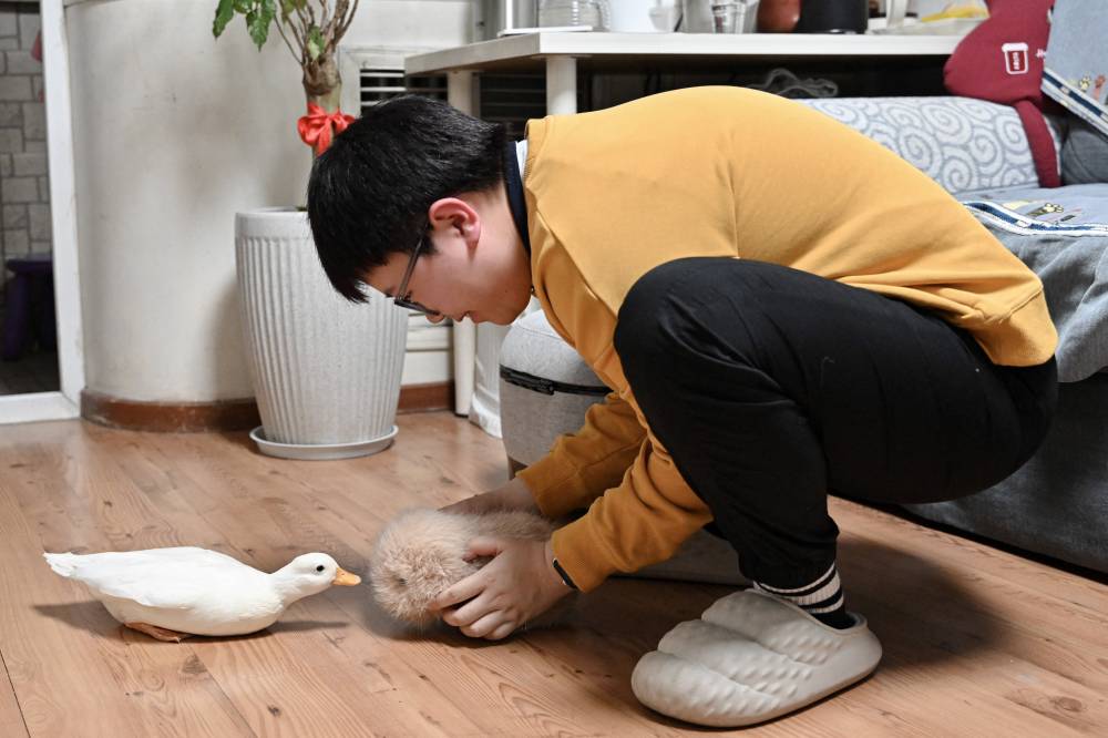 “I feel like I now have someone to share the happy times with,” Zhang told AFP in the apartment she shares with her parents and a real pet duck.
