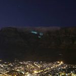 (FILES) A laser image of late former South African President Nelson Mandela’s face and his clan name “Madiba” is projected on the Table Mountain in Cape Town, late on December 10, 2013. Anti-apartheid hero Nelson Mandela has been seen as a moral compass in his home South Africa, but ten years after his death his legacy is vigorously debated, with some questioning the quality of the country’s democracy. (Photo by Jennifer BRUCE / AFP)