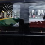 (FILES) People celebrate as the funeral cortege of South African former president Nelson Mandela drives to the Union Buildings for the lying in state on December 12, 2013 in Pretoria. Anti-apartheid hero Nelson Mandela has been seen as a moral compass in his home South Africa, but ten years after his death his legacy is vigorously debated, with some questioning the quality of the country’s democracy. (Photo by Marco LONGARI / AFP)
