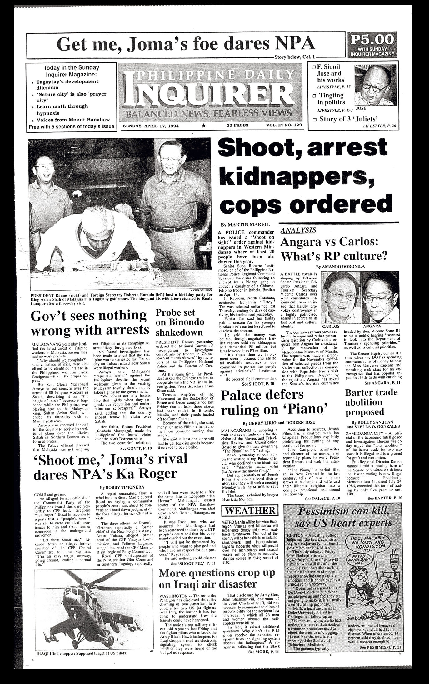 April 14, 1994: Shoot, arrest kidnappers, cops ordered by Philippine Daily Inquirer April 17, 2025 April 17, 1994
