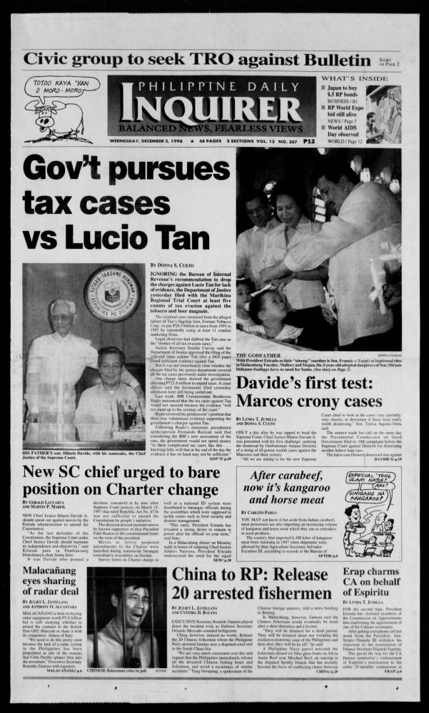 December 2, 1998: Gov’t pursues tax cases vs Lucio Tan by Philippine Daily Inquirer December 2, 2023 December 2, 1998. 0 Comments