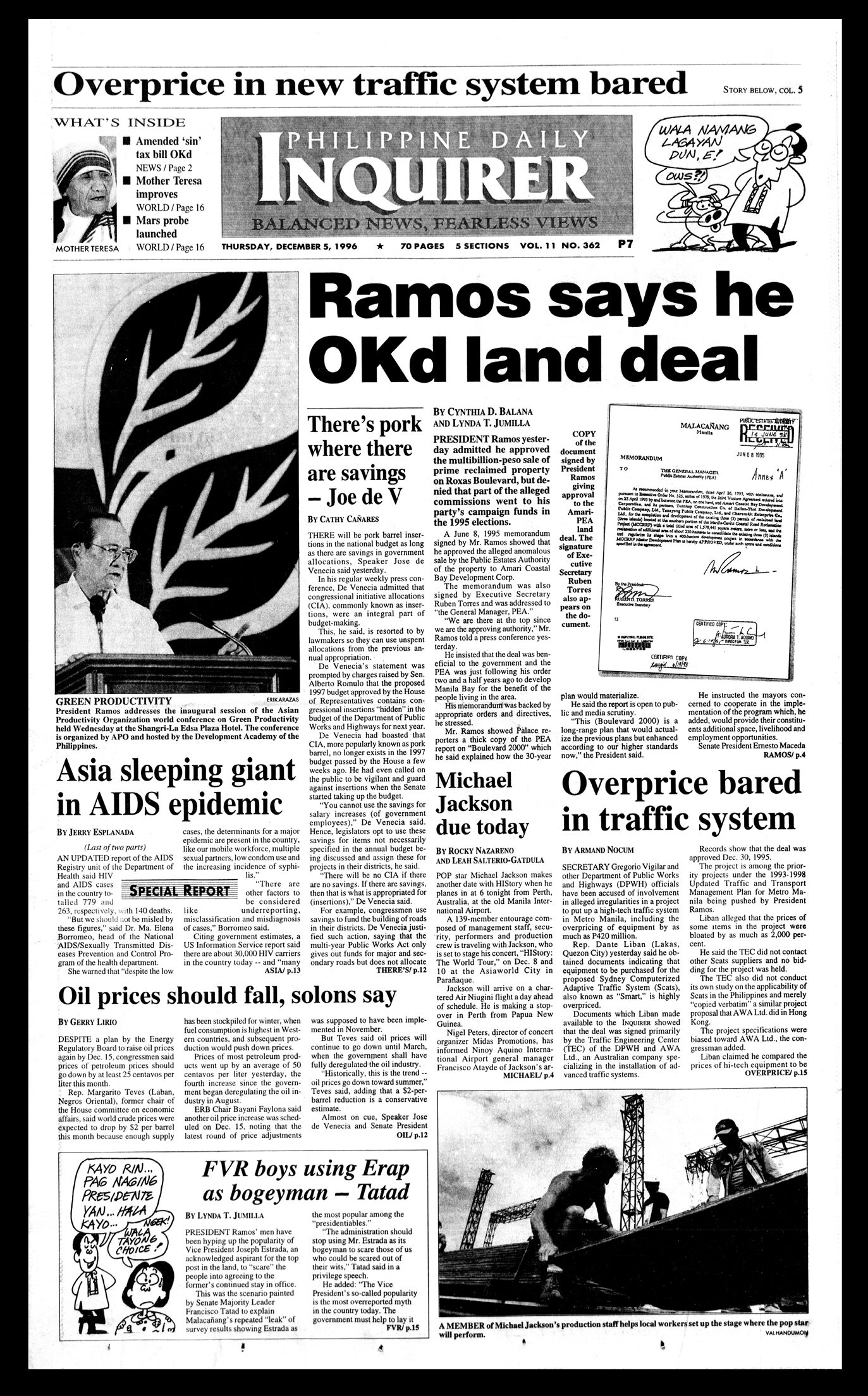 December 5, 1996: Ramos says he OKd land deal by Philippine Daily Inquirer December 5, 2025 December 5, 1996