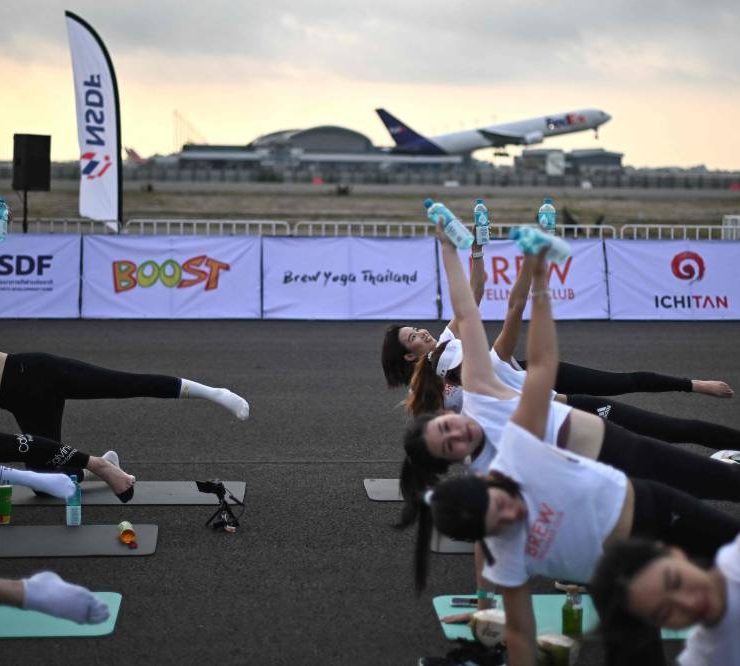 “We have so many people come here to just join the yoga class, and take a picture on a runway,” she told AFP, praising Bangkok’s yoga community.