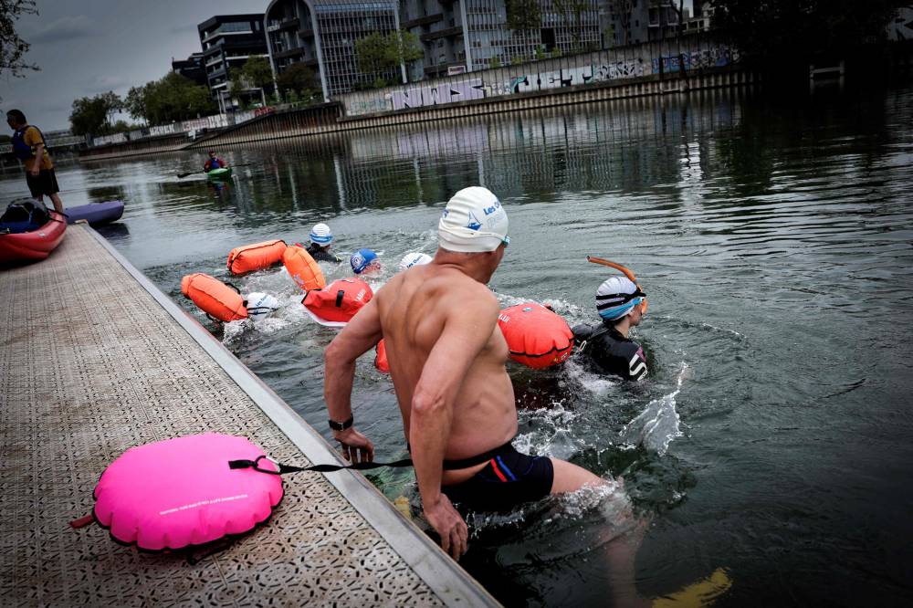 - A group of swimmers prepare to enter the River Seine to swim, in Ile-Saint-Denis, north of Paris on May 1, 2024. (Photo by STEPHANE DE SAKUTIN / AFP)