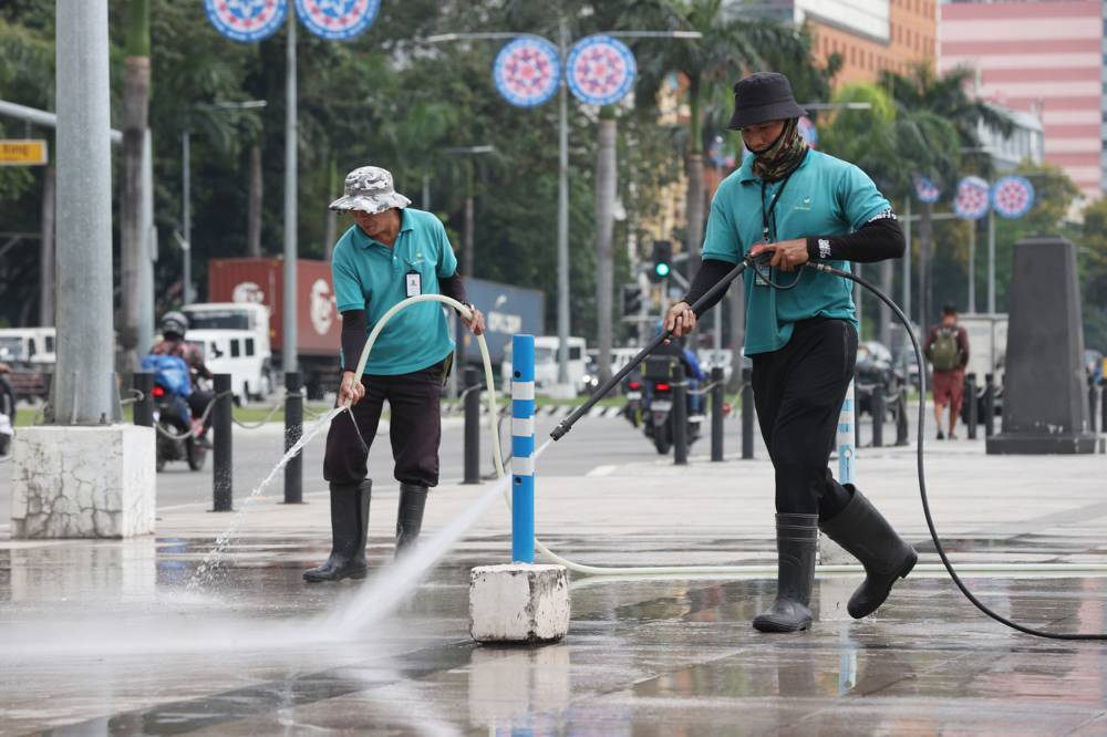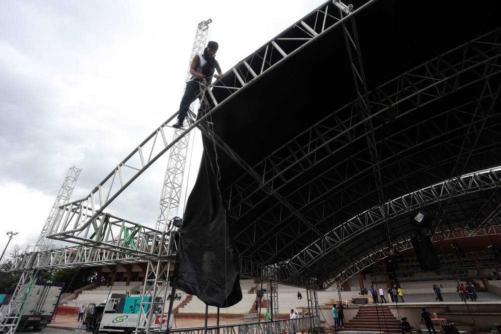 Workers at Quirino Grandstand in Luneta Park on Saturday prepare for the “National Rally for Peace” to be led by the Iglesia ni Cristo (INC) on Monday. The event is expected to draw at least 1 million of INC’s estimated 2.8 million members in the country—a relatively smaller flock but seen to be a more solid following behind the sect. INC had said the rally would “support” President Marcos’ stand against the impeachment of his estranged ally, Vice President Sara Duterte. Only on Friday, workers were restoring cleanliness and order at Rizal Park after the annual “traslacion,” or procession of the Black Nazarene, which began before dawn of Thursday at Quirino Grandstand. With 8.1 million people joining this year’s procession, it was the biggest gathering of Black Nazarene devotees since the 6.5 million who took part in last year’s feast, and the longest, at 20 hours and 45 minutes, since the 16-hour-plus ceremony in 2020 attended by 3.1 million devotees. —NIÑO JESUS ORBETA