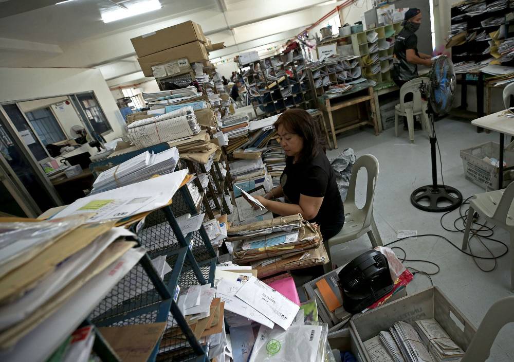 POST OFFICE / JANUARY 12, 2024 A personnel arranges letters and parcels at the satellite post office in Manila at the back of burnt Manila Central Post Office. INQUIRER PHOTO / RICHARD A. REYES.