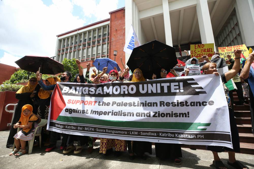 Human rights activists, including members of the Muslim community, hold a rally on Friday at the Diliman campus of the University of the Philippines to express support for the Palestinian people, amid the bombardment of Gaza now on its second year since the Oct. 7, 2023, surprise attack by Hamas on Israel’s border communities. It has been a week since Israel lifted its March 2 blockade on the delivery of food into Gaza. But aid agencies have criticized Israel’s plan to limit the distribution of food while the enclave’s 2.1 million people are on the brink of starvation. —LYN RILLON