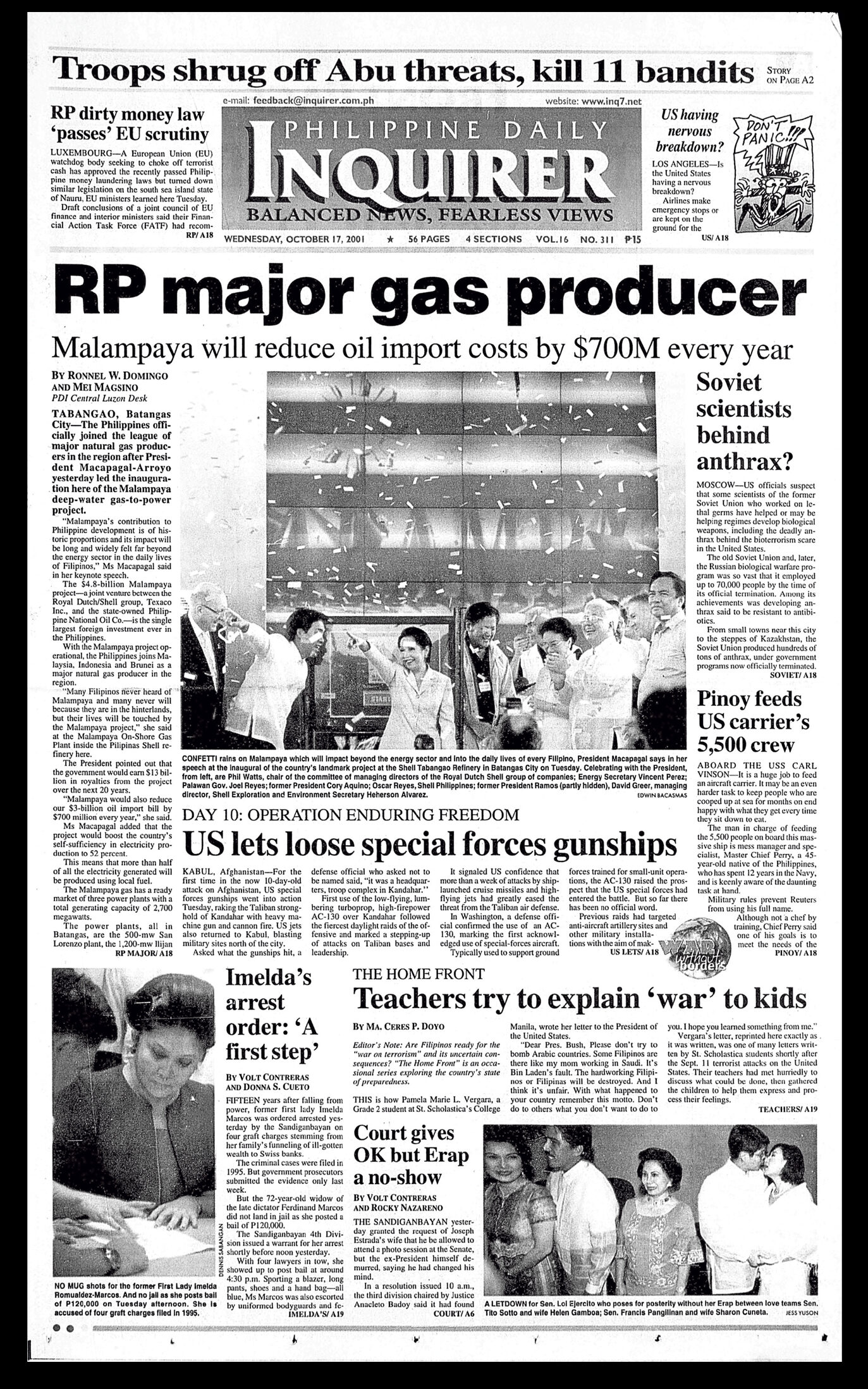 October 17, 2001: RP major gas producer by Philippine Daily Inquirer October 17, 2025 October 17, 2001