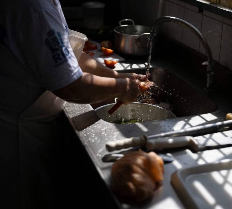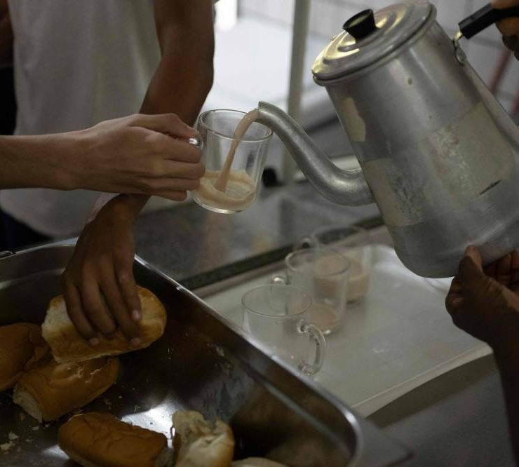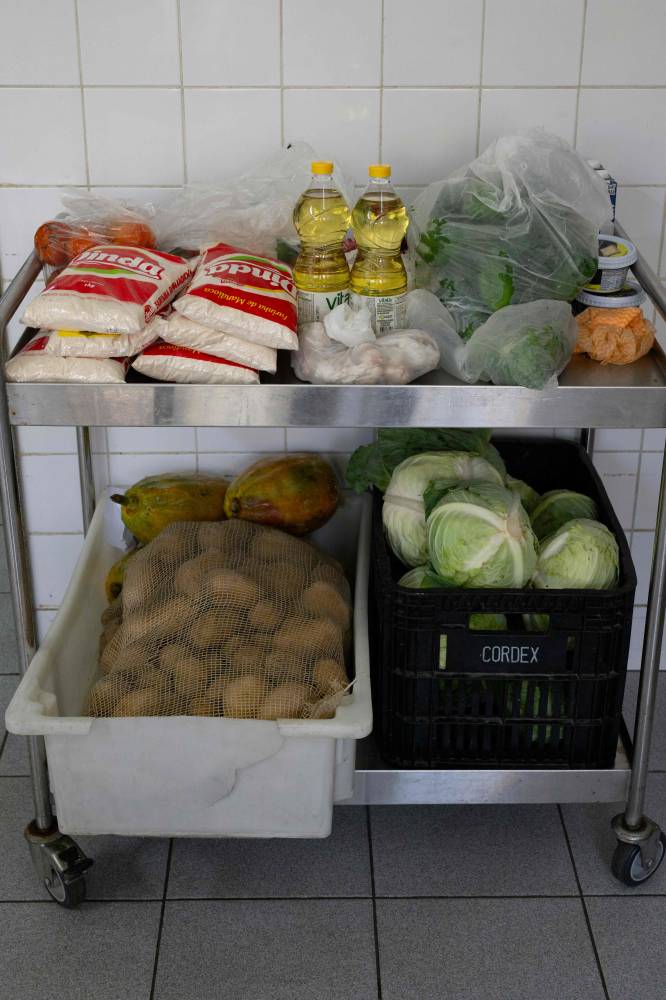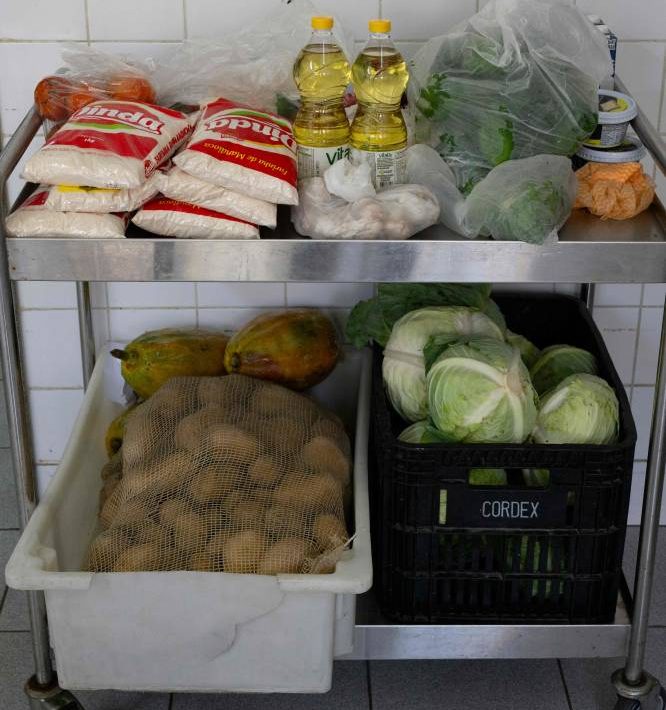“Cake? There’s no cake,” laughs cook Neide Oliveira as she chops onions for the 650 students of Burle Marx public school on Rio’s west side.