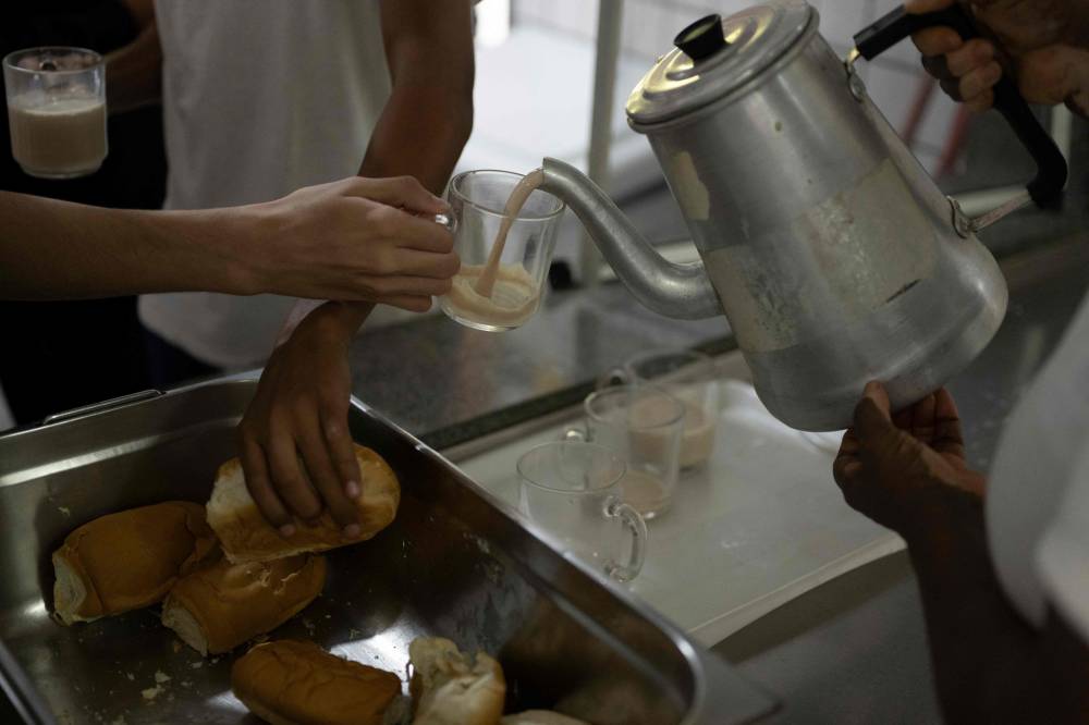 Students have lunch the municipal Burle Marx school's kitchen in Rio de Janeiro, Brazil, on April 4, 2024. Nearly one-third of children in Brazil are obese, an epidemic city health officials and community leaders are seeking to address in innovative ways, enlisting school cafeterias and taking their message of healthful eating to the street. (Photo by Pablo PORCIUNCULA / AFP)