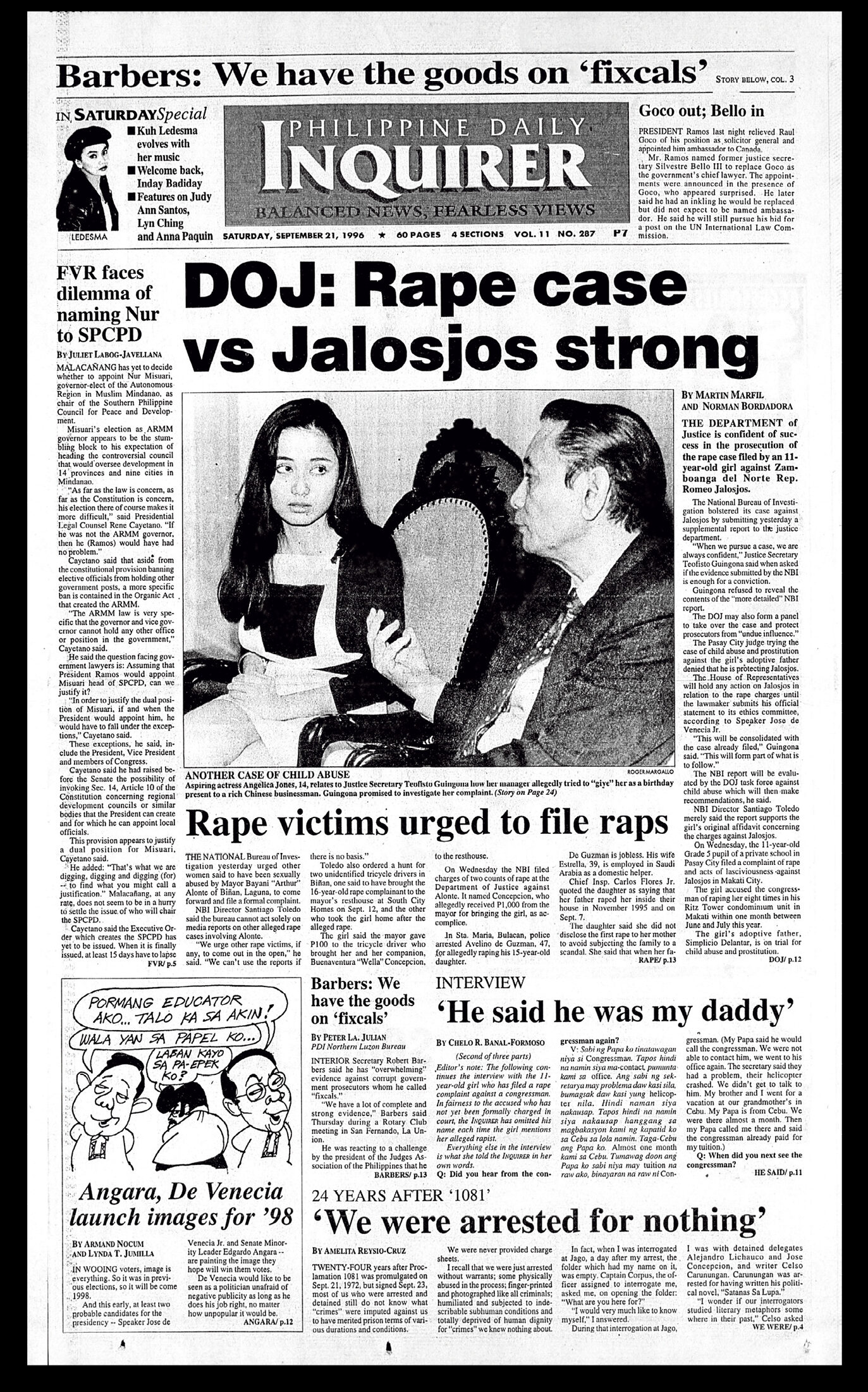 September 21, 1996: DOJ: Rape case vs Jalosjos strong by Philippine Daily Inquirer September 21, 2025 September 21, 1996