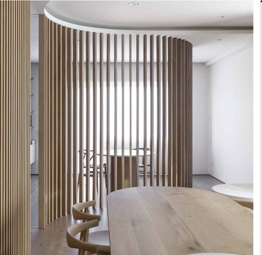 Curvilinear walls soften not only corners, but the navigation of a space as well. Junctions feel less abrupt, movement flows more smoothly, and spaces feel less aggressive. No new walls to build? Then add a curvilinear screen or partition as a second skin or as a floating panel.