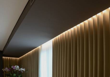 Dealing with harsh lighting? Slightly rewire your electricals and find little spaces where you can introduce strip lighting. Integrate them into existing curtain coves, shelving, or ceiling shadow lines. With indirect warm lighting, volumes feel soft and weightless.