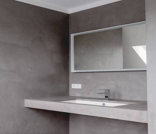 Modernize your spaces with a microcement finish. More than just a stucco, it’s a material made up of a mixture of cement with resins, fibers, other aggregates, and polymers. It creates soft, seamless surfaces for walls and floors, and is applicable in wet areas.
