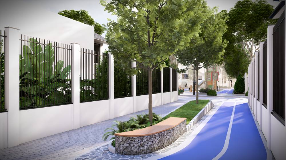 This space anchors the village’s shared amenities, including a fitness center with movement studio, entertainment room, kids’ playroom, and a function hall for up to 160 guests. Outdoors, a swimming pool with jacuzzi and spa jets, cabanas, sun lounges, alfresco dining areas, and open workout spaces extend living and recreation into nature.