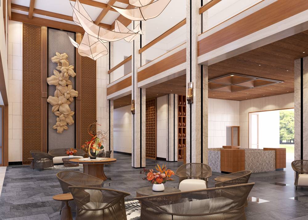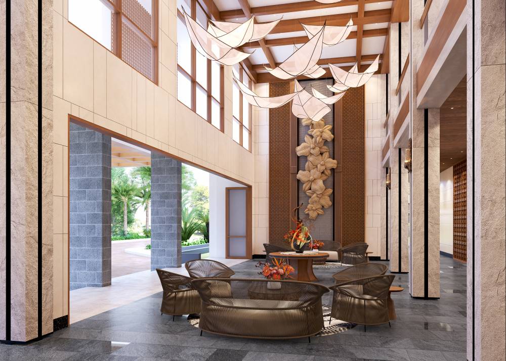 At the heart of the village is a two-story modern tropical clubhouse framed by coastal greenery. Residents and guests are welcomed to light-filled, glass-lined interiors, where high ceilings and floor-to-ceiling windows create an airy, refined beachfront atmosphere.
