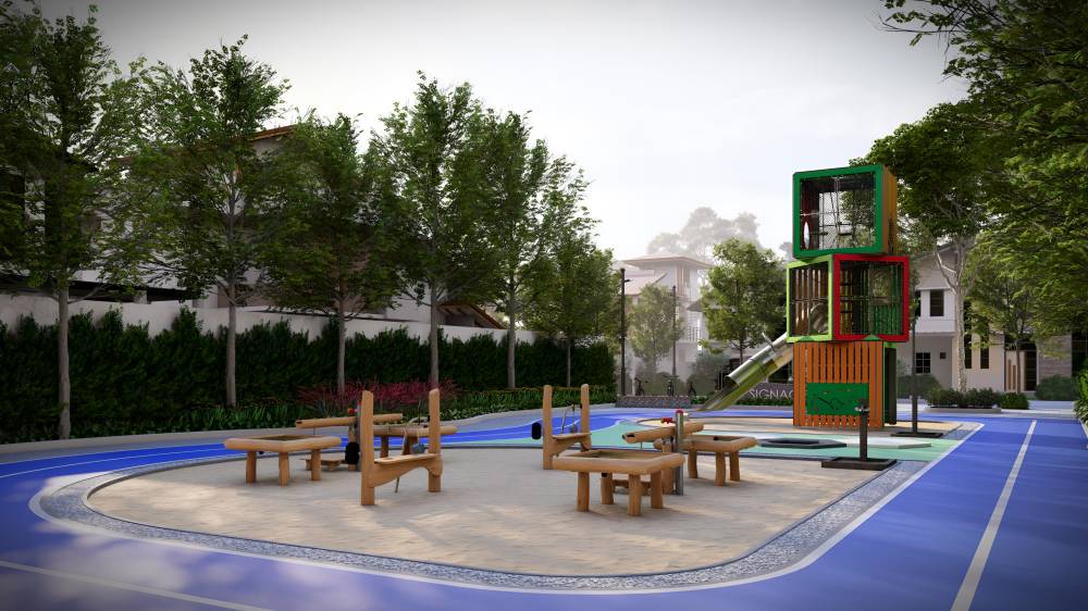 The Clubhouse also connects directly to the Central Park, a landscaped green spine with jogging paths linking picnic groves, a multiplay court with bleachers, and expansive lawns. Linear parks woven through residential blocks introduce pocket gardens and fitness trails, while a sand play zone, dedicated pet park, and urban agri garden create a community centered on wellness.