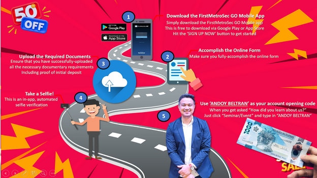 So if you would like to take that first step to investing, simply download the “FirstMetroSec GO” mobile app, complete the online registration form, and upload the documentary requirements—all in under 10 minutes.