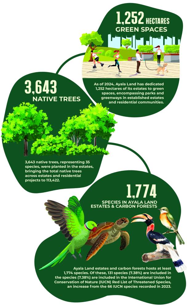 From Nuvali’s eco-city design with over 51,000 trees (86 percent native species) to Vertis North’s Rain Garden—a 1-ha terraced park that doubles as a rainwater catchment basin—Ayala Land’s parks reflect care for the environment, for the community, and for the future.