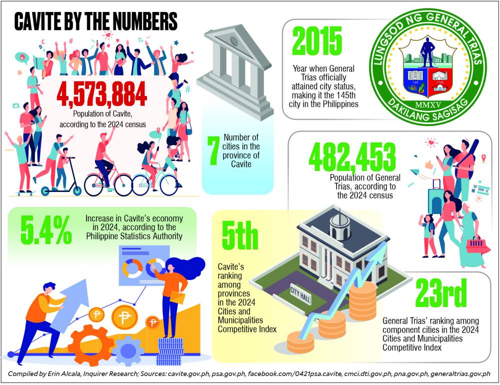 General Trias is Cavite’s seventh city in 2015 under Republic Act No. 10675. Today, this city hosts major manufacturing, semiconductor, and real estate companies, including the Gateway Business Park and Cavite Economic Zone.