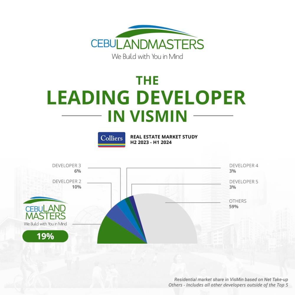 Cebu Landmasters Inc. (CLI) was once again named as the number one developer in Visayas and Mindanao (VisMin) in a recent Colliers Real Estate market study, sealing its market dominance in the region.