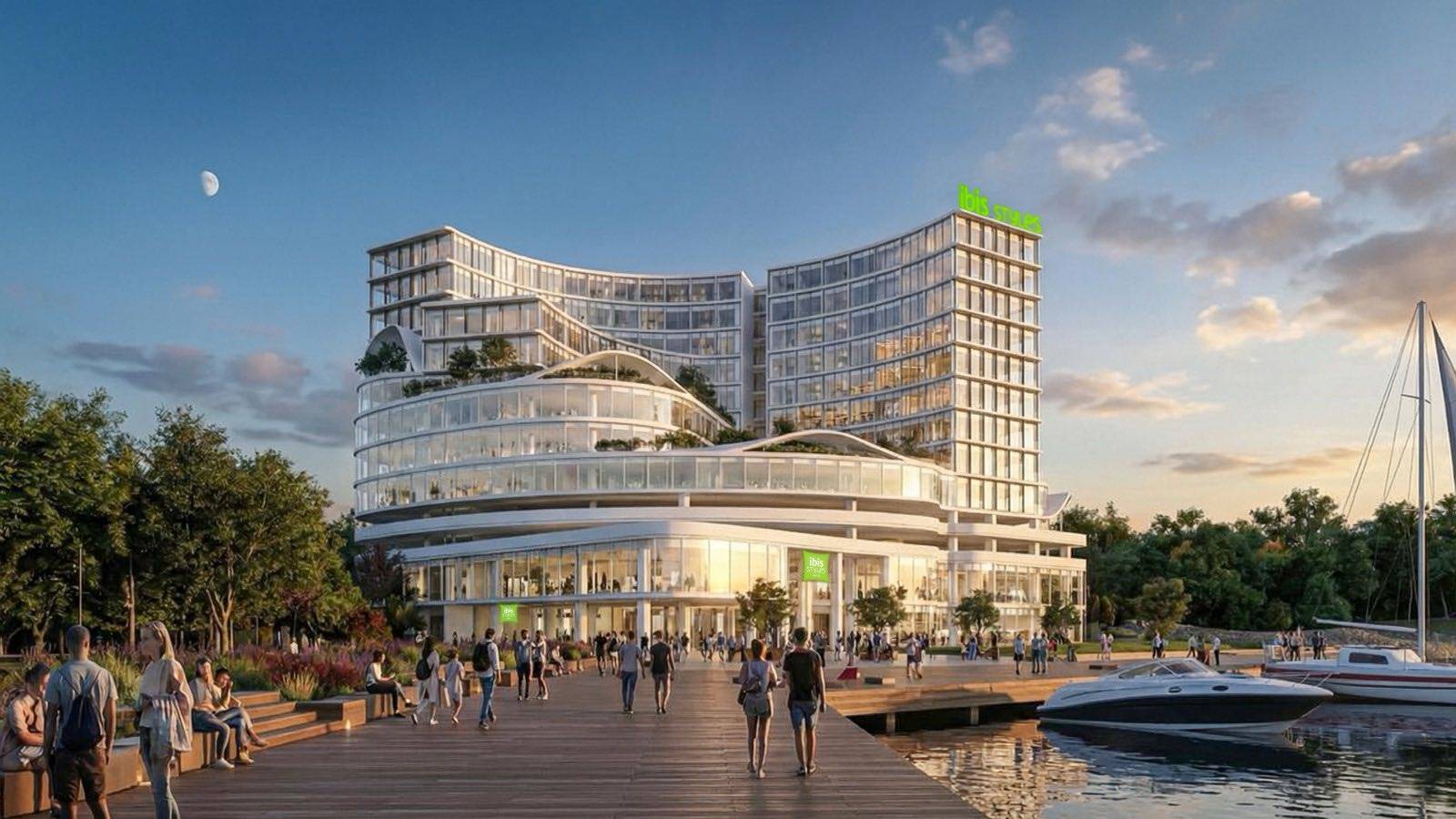 The mixed-use structure, including the ibis Styles hotel, is being designed by WT Architects, whose work will guide the site’s architectural character toward a contemporary waterfront expression that complements its marina setting while supporting modern hospitality and commercial functions.