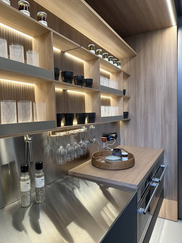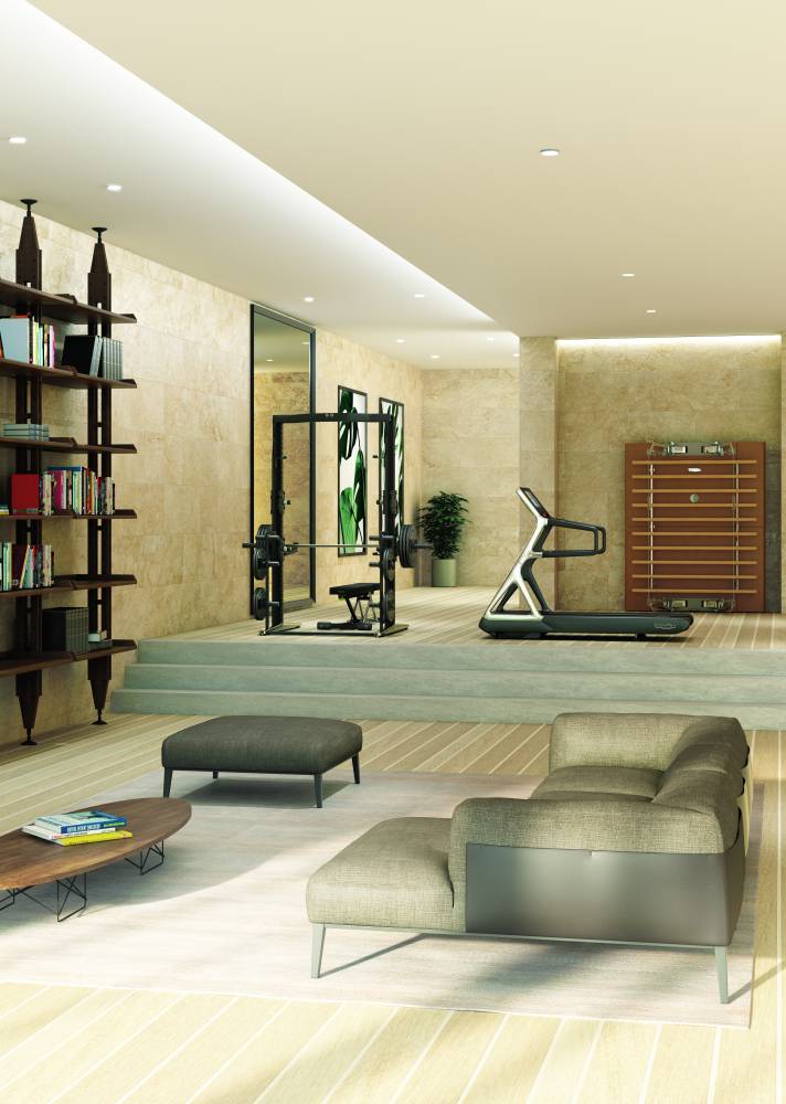 A recommended size for a home gym is around 15 to 20 sqm, if you don’t have enough space. For a condo unit, you may opt to spread out your equipment, which makes it a must to choose pieces that look good as well. Scavolini and Life Fitness offer a wall-mounted, full system gym, while Technogym has a bestselling bench that has a dumbbell storage underneath.