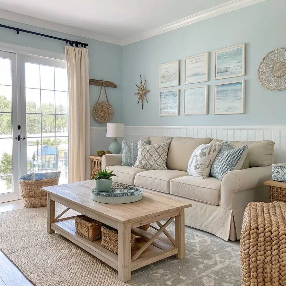 Inspired by the beach, the Coastal style creates a serene, breezy, and relaxing atmosphere through a light, neutral palette and natural materials such as jute and rattan, with some soft blue hues.