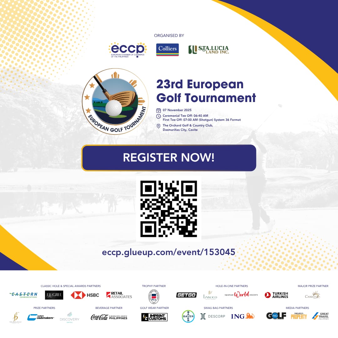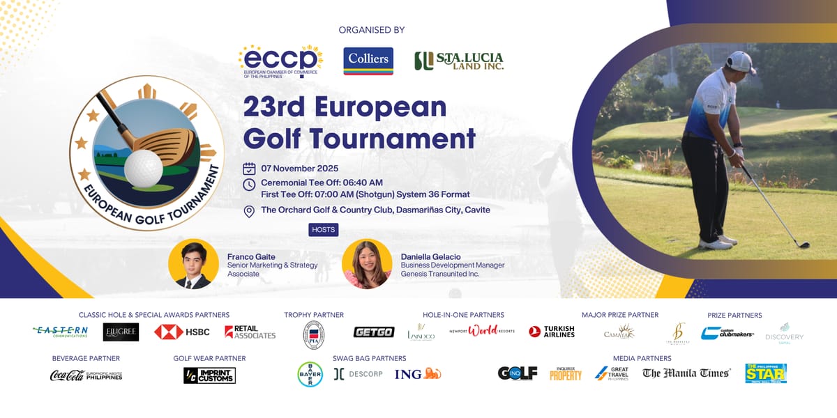 Manila, Philippines – The European Chamber of Commerce of the Philippines (ECCP), in collaboration with Colliers International Philippines and Sta. Lucia Land Inc., is thrilled to announce the upcoming 23rd European Golf Tournament on 7 November 2025 at The Orchard Golf & Country Club in Dasmariñas City, Cavite.