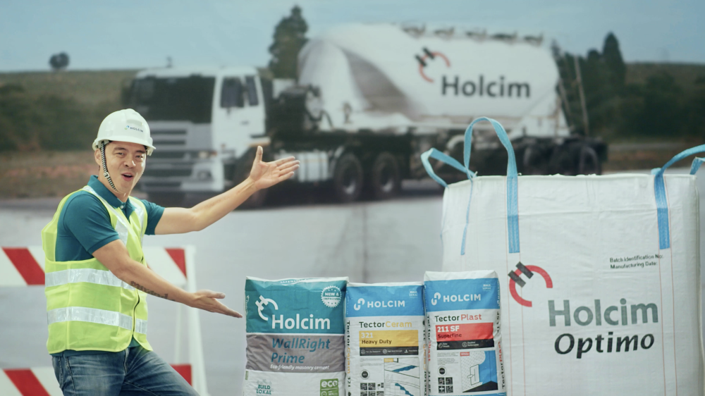The commercial features a diverse array of Holcim’s innovative building solutions. Leading the pack is Excel ECOPlanet, an environment-friendly cement specifically formulated for homes and low-rise buildings. For infrastructure and road projects, Solido is the ideal solution.