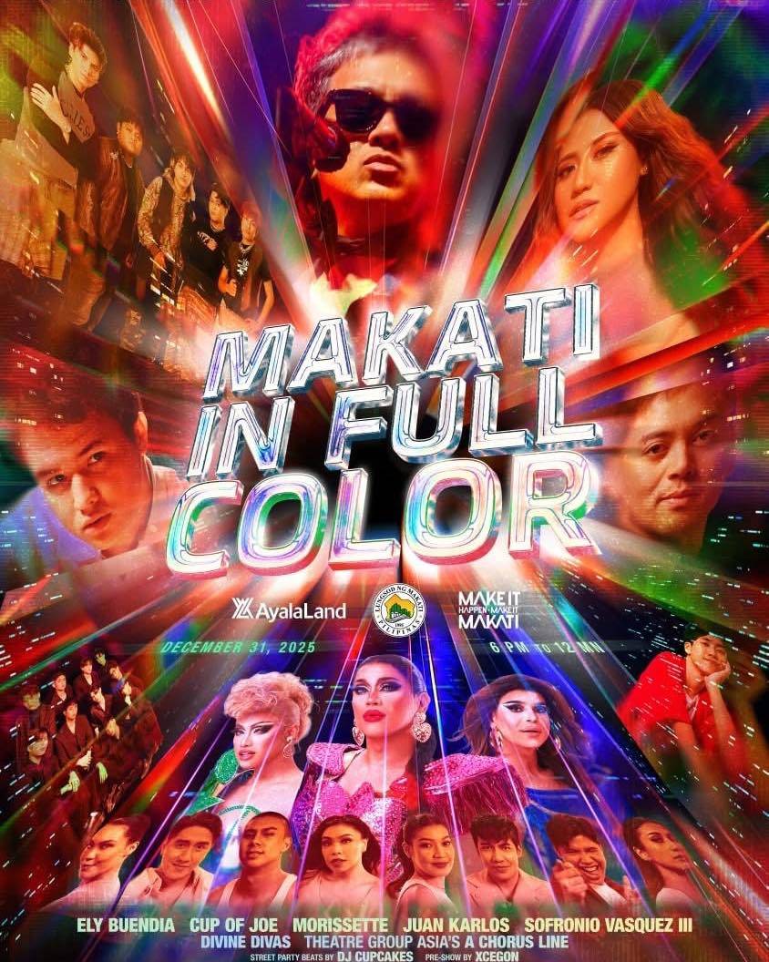 “Makati in Full Color: Ayala Avenue New Year’s Eve Countdown to 2026” will transform the heart of Makati into a vibrant citywide celebration. Happening near the Ayala Triangle Gardens, the countdown runs from 6 p.m. to midnight and will feature live performances by Ely Buendia, Cup of Joe, Morissette, Juan Karlos, Sofronio Vasquez III, and more.